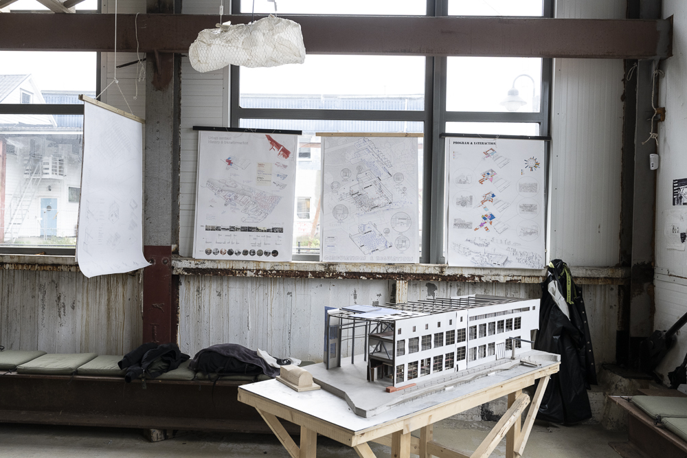 Builders’ Hut was a masters-level design-and-build course at Bergen School of Architecture (BAS) grounded in the school’s long-standing philosophy of ‘Open Form’ — an understanding of architecture as an unending process of continual adaptation. Originally developed in Poland by Oskar Hansen, and further explored with Sofia Hansen in response to the rigid principles of modernism and their implementation in the Eastern Bloc, Open Form was later introduced and adapted at BAS by founder Svein Hatløy, shaping the school’s tradition of situated, critical, and collaborative practice. In spring 2025, Builders Hut brought this approach into direct encounter with the specific context of Kjødehallen at USF. Through a collaborative process of mapping, debating, prototyping, and making together, the course explored the multiple histories, resources, and cultural ambitions of the site. The material result is a series of shared infrastructures and spatial interventions designed to enable endlessly flexible possibilities for the hall’s future occupation.