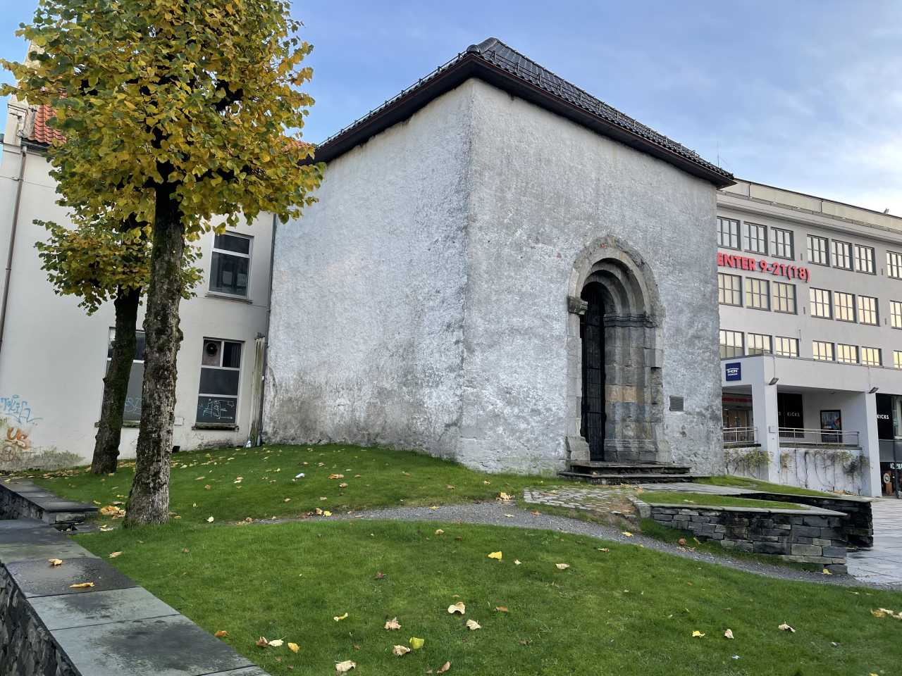 Just across from The Nonneseter Chapel stands the Tower Base. Built in the early 1100s, it is the oldest surviving structure in Bergen and a significant historical site. Once part of a larger church tower, it is now a single-story structure with a round-arched, cross-vaulted ceiling. A bronze memorial by Hans Jacob Meyer titled Mother and Child is permanently installed here to commemorate Bergen residents who lost their lives during World War II.