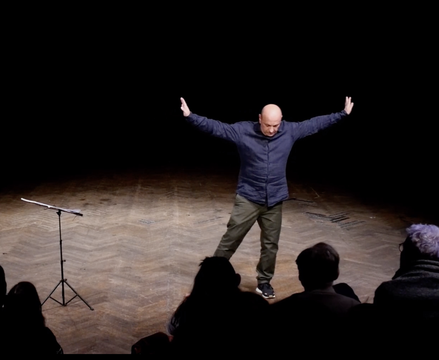 Klokken 19:00 inviterer BAS-kurset On Composition komponist, koreograf og danser Matteo Fargion til ROMMET. Her fremfører han The Solo Piece — et 25 minutters soloverk bestående av kroppsbevegelser som er samlet og husket, bevisst eller ubevisst, gjennom 20 år med scenisk arbeid. Etter fremføringen følger en uformell samtale med Fargion om hans metode og erfaringer med komposisjon på tvers av dans og musikk. Arrangementet holdes på engelsk.